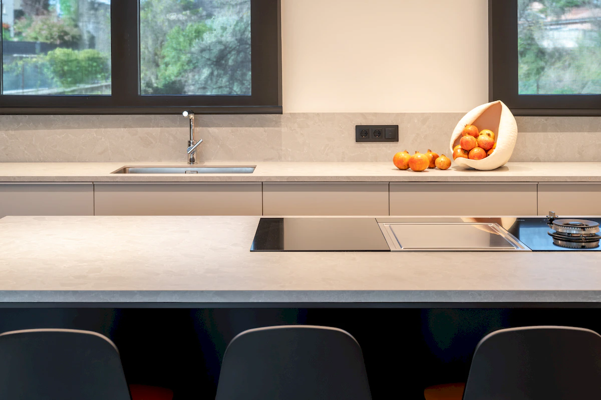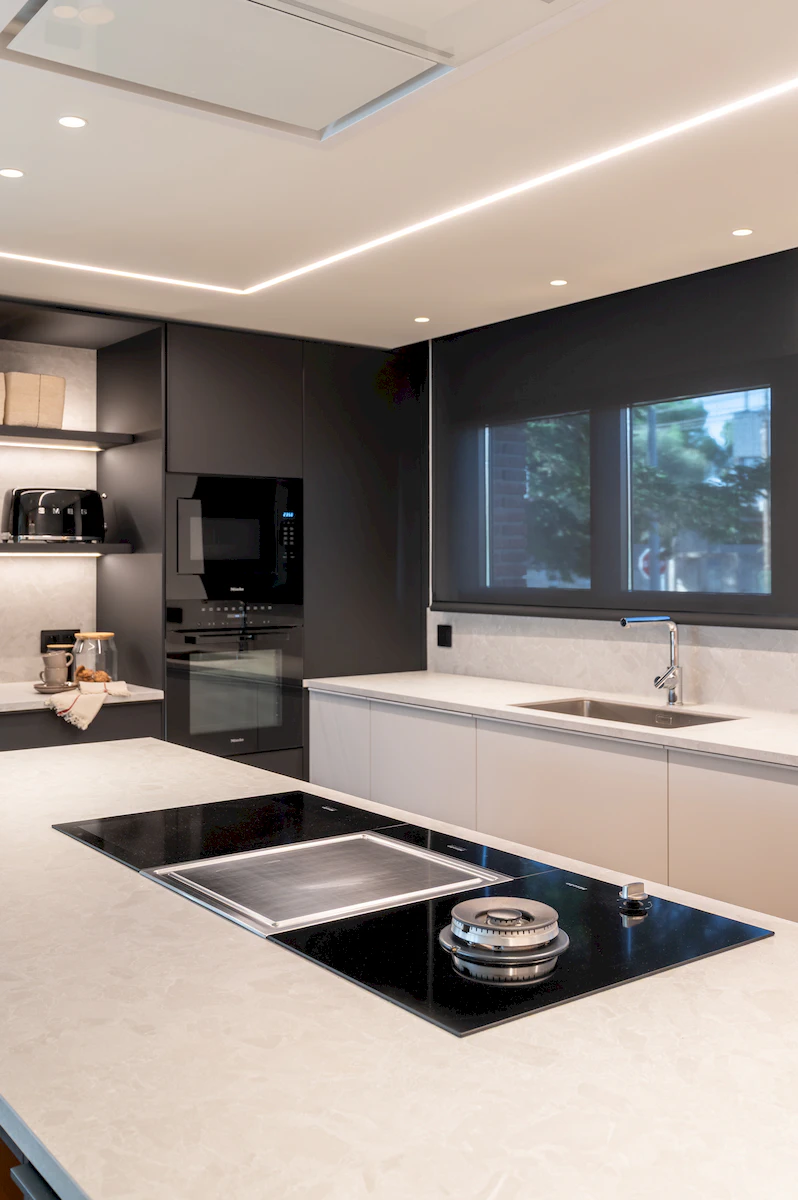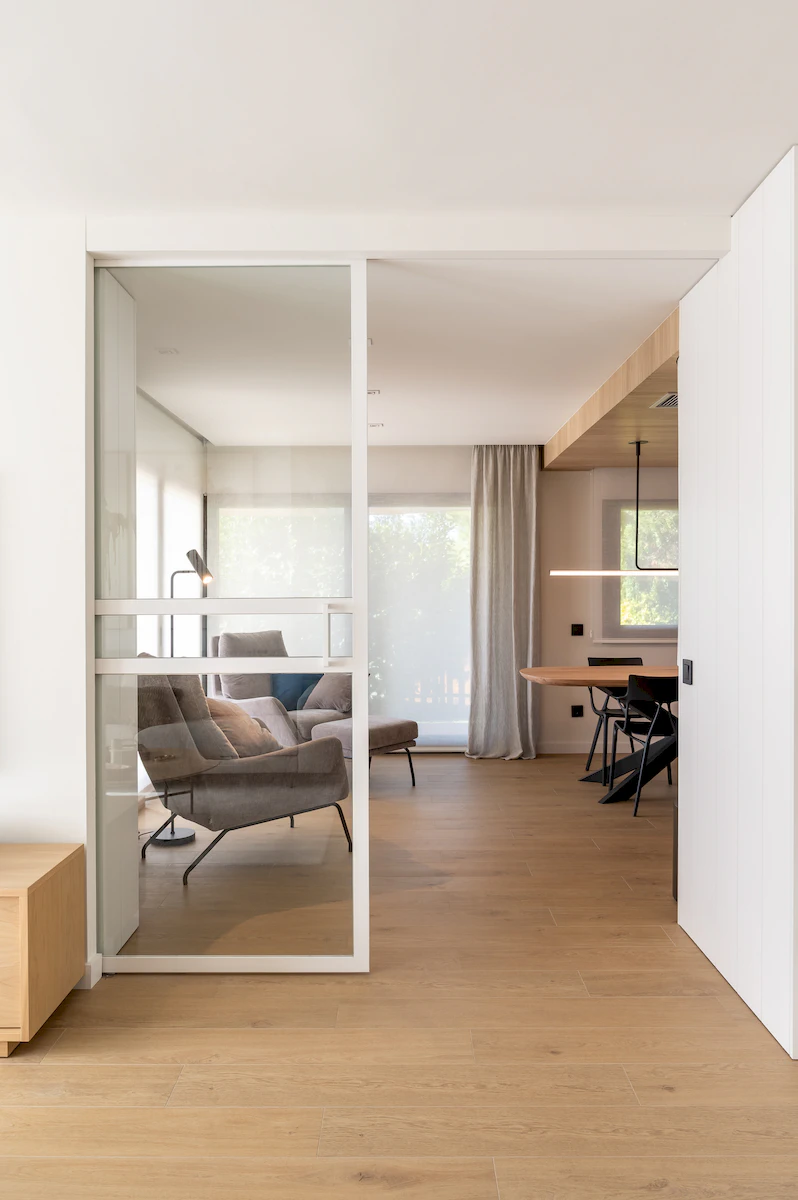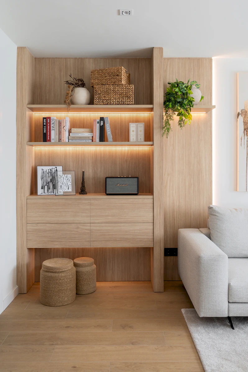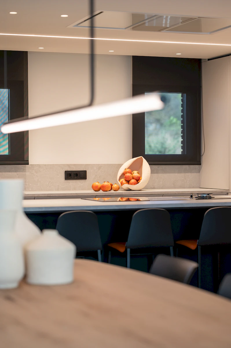 Reforma integral de la zona de dia d’un habitatge unifamiliar, on cuina i menjador conviuen en un espai obert i lluminós, connectat amb la sala a través d’una corredera de vidre que manté la continuïtat visual. La llar de foc articula el projecte, mentre que la fusta, els volums suaus i els tons neutres construeixen una atmosfera càlid, serena i atemporal.