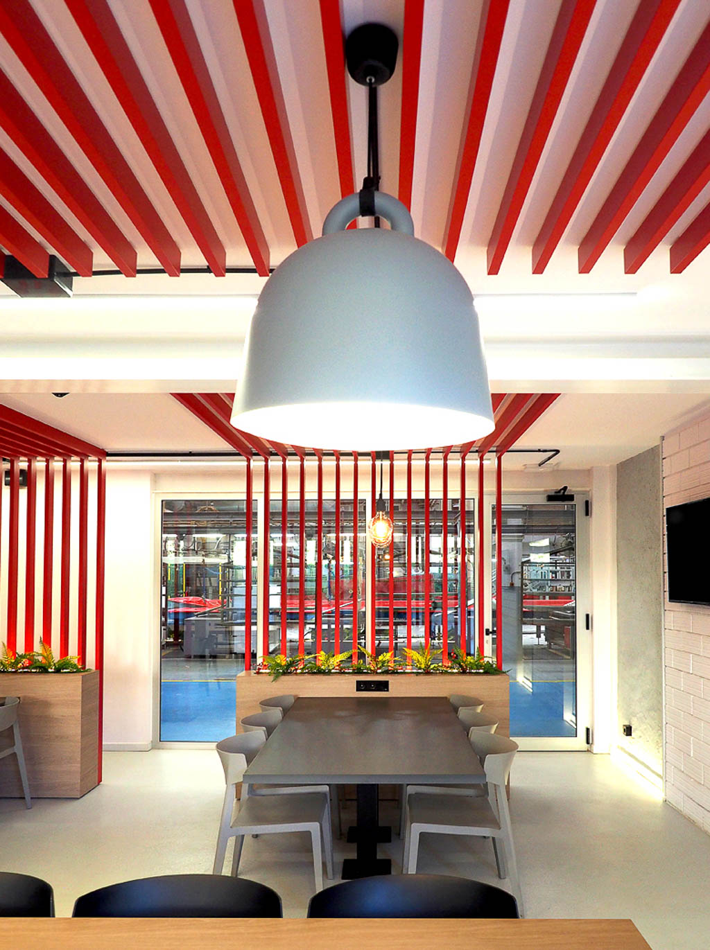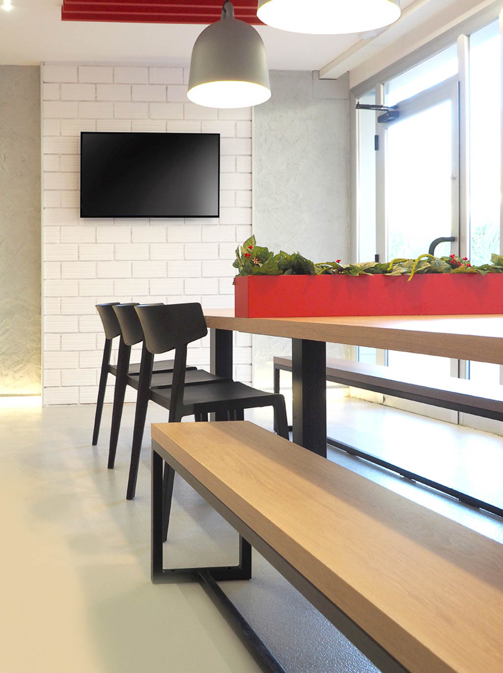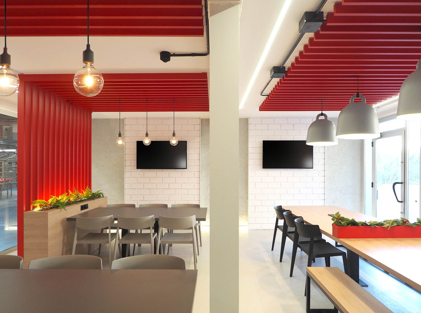 S'amplia i s'actualitza el menjador dels treballadors dins la fàbrica, seguint la imatge de l'empresa PROSEAT FOAM MANUFACTURING. Dissenyem un espai annex però separat visualment de la cadena de muntatge. Reubiquem l'espai de la venda automàtica i creem de nou l'office. Busquem una intenció elegant, còmode i corporativa en el disseny d'aquest espai. Un indret de desconnexió per als seus usuaris.