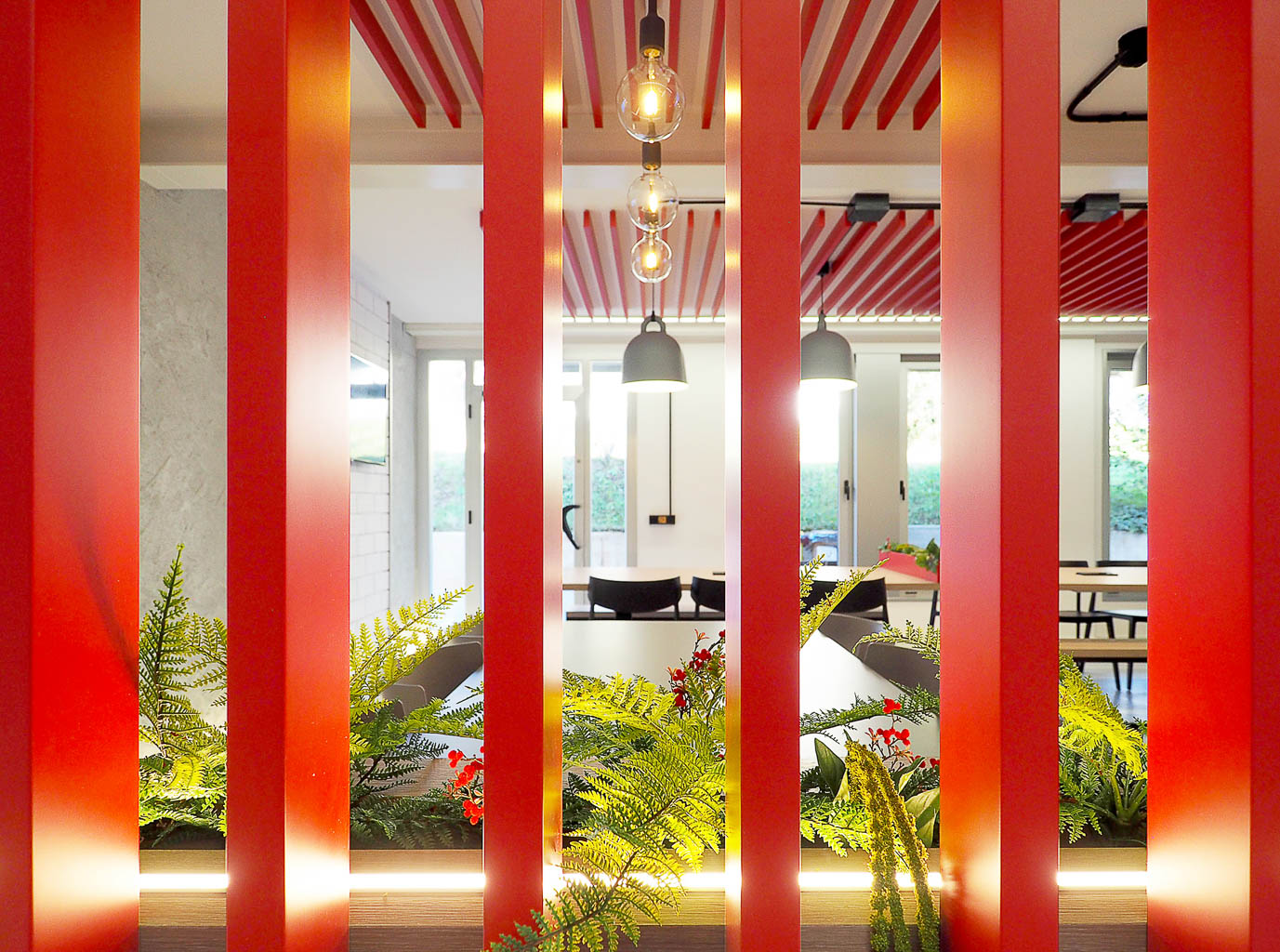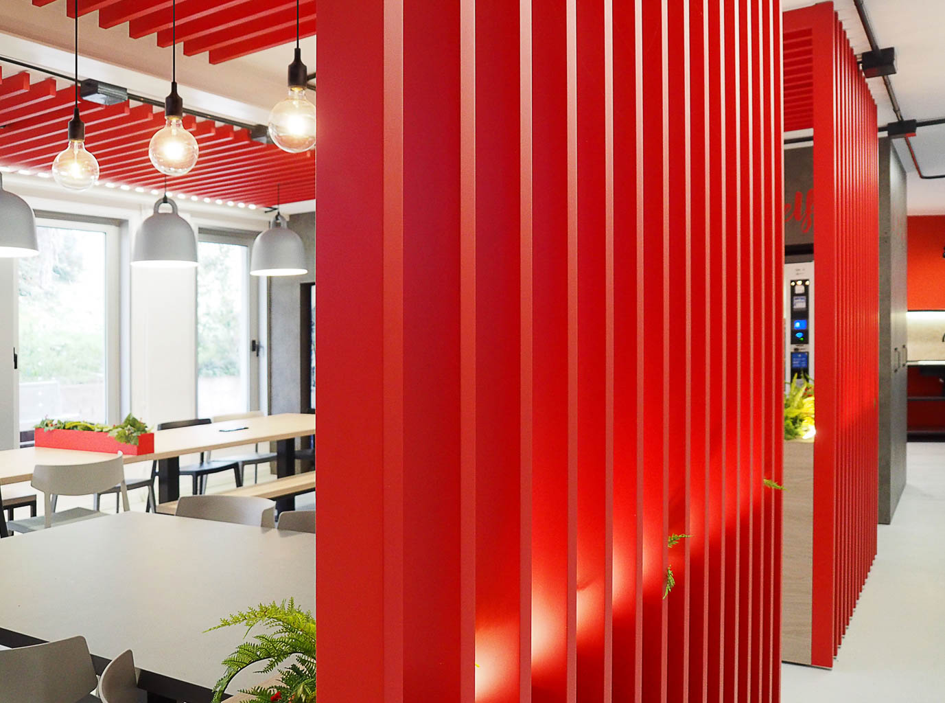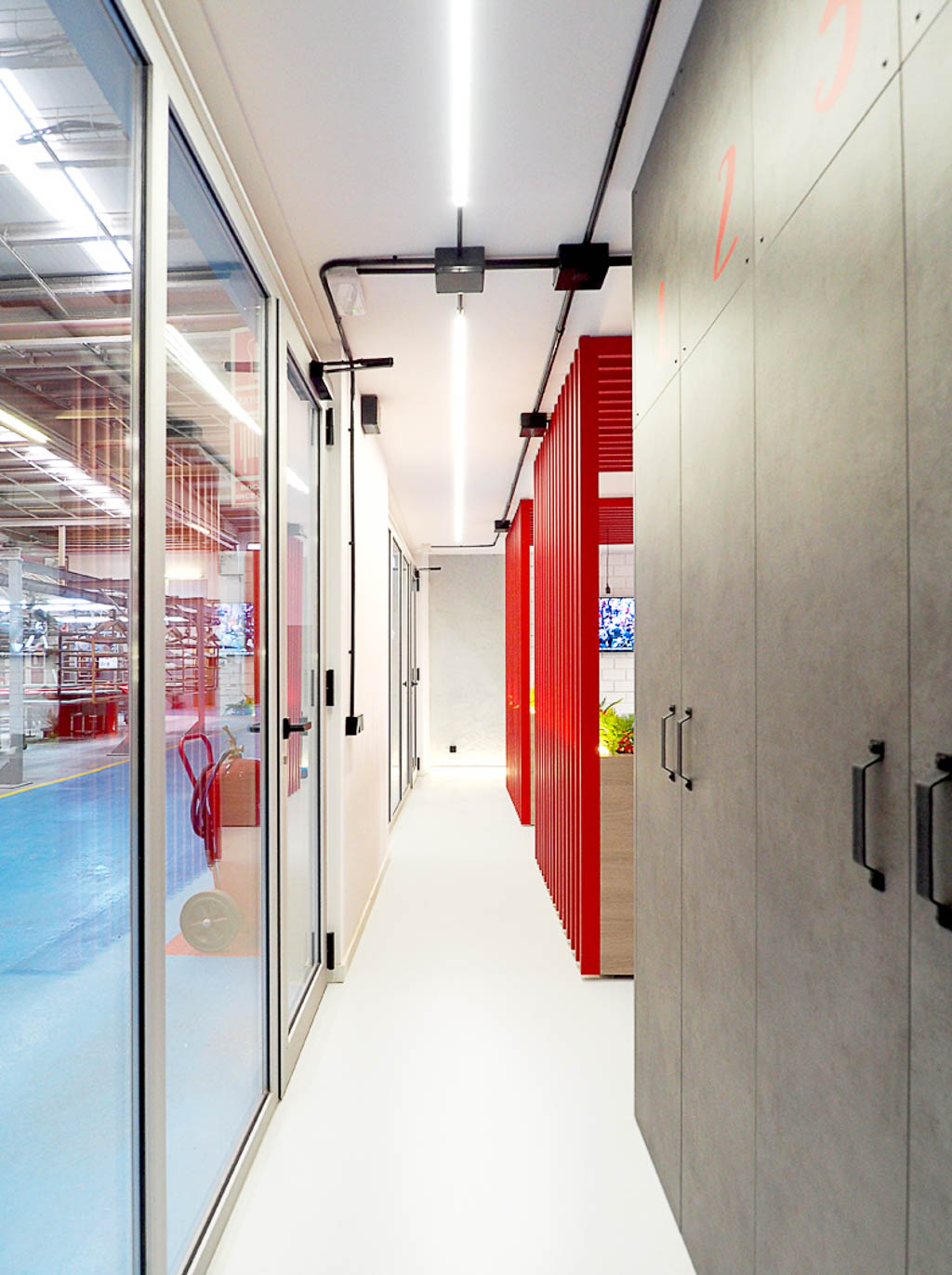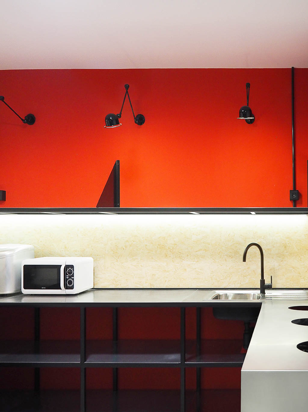 S'amplia i s'actualitza el menjador dels treballadors dins la fàbrica, seguint la imatge de l'empresa PROSEAT FOAM MANUFACTURING. Dissenyem un espai annex però separat visualment de la cadena de muntatge. Reubiquem l'espai de la venda automàtica i creem de nou l'office. Busquem una intenció elegant, còmode i corporativa en el disseny d'aquest espai. Un indret de desconnexió per als seus usuaris.