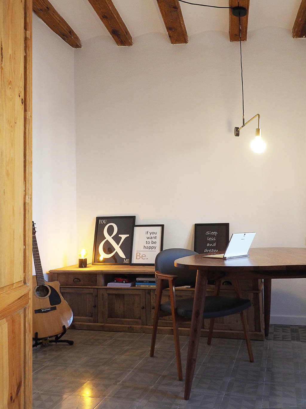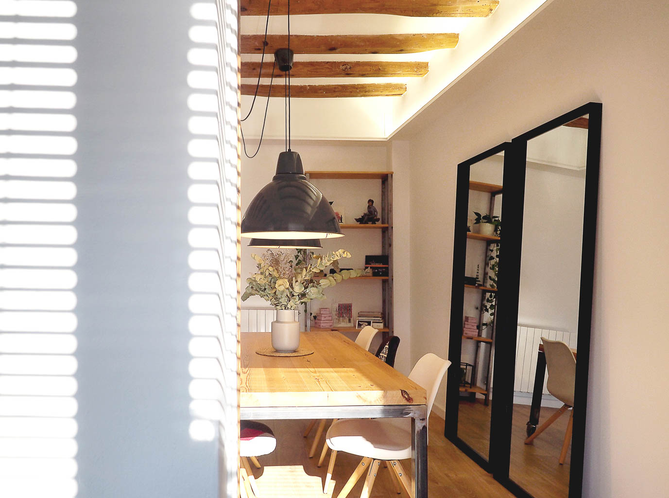 Distribuïm i definim les estances segons els usos definits, projectant el mobiliari i complements més adequats. Ens trobem amb un encàrrec on nosaltres intervenim en el contingut, doncs parlem d’un pis al casc antic de Manresa acabat de reformar, on s’han recuperat els elements estructurals originals qui demanen lluir, sense massa més companyia que el necessari. Peces escollides i pensades que complementen l’envolvent existent i transmeten l’essència de la seva propietària.